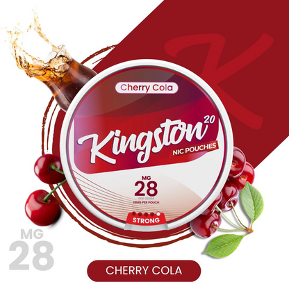 Kingston - Cherry Cola 28mg/g nicotine pouches deliver a rich and refreshing fusion of sweet cherry and classic cola flavor, enhanced with a cool, icy finish. With a nicotine strength of 28 mg/g and 18 mg per pouch, these nicotine pouches provide a strong and satisfying kick. The slim, tobacco-free design ensures a discreet and comfortable fit, making them perfect for use anytime, anywhere. Kingston - Cherry Cola 28mg/g is the ideal choice for those who enjoy bold, fruity flavors with a powerful nicotine boost.
