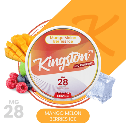 Kingston - Mango Melon Berries 28mg/g offers an exciting and vibrant blend of tropical mango, refreshing melon, and sweet berries. With a nicotine strength of 28 mg/g and 18 mg of nicotine per pouch, these nikotinpåsar deliver a strong and satisfying kick. Designed to be tobacco-free and drip-free, they provide a discreet, comfortable, and clean experience, perfect for use on the go or during moments of relaxation. Kingston - Mango Melon Berries is the ideal choice for those who enjoy bold, fruity flavors combined with a powerful nicotine experience.