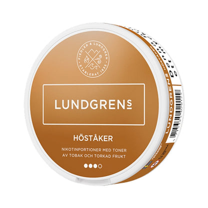 Lundgrens Höståker nicotine pouches deliver a refined taste of dried fruit and tobacco, offering a balanced and satisfying flavor. Designed in a large format, these pouches provide a classic feel with a modern touch. With a strong nicotine strength of 10 mg per portion (12.5 mg/g), Lundgrens Höståker white snus is perfect for those seeking a robust experience.