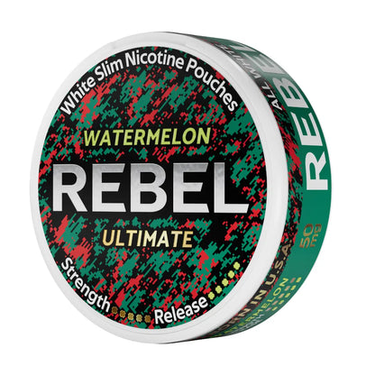 REBEL Watermelon Ultimate nicotine pouches pack an explosive punch of tropical watermelon flavor alongside an extreme 50 mg/g nicotine strength (30 mg per pouch). Made for veteran users, this all-white snus pouch delivers bold taste and raw power in a slim, discreet format.