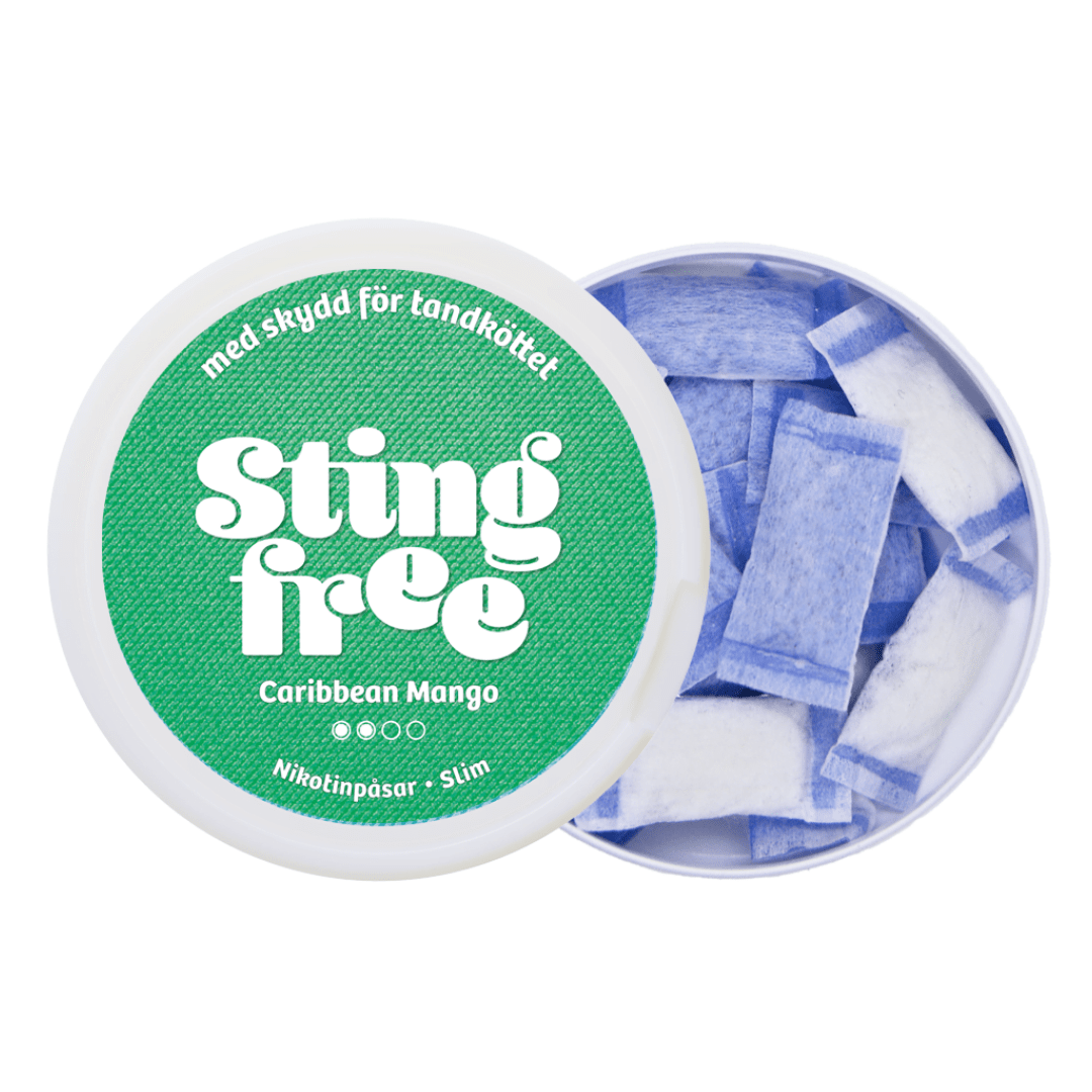Stingfree is a Swedish nicotine pouch brand known for its focus on comfort, innovation and gum-friendly design. With its patented blue Protex concept across the range, Stingfree aims to reduce irritation while preserving full flavor and effective nicotine delivery, making products like Caribbean Mango a standout choice in the mild, fruity white snus category.