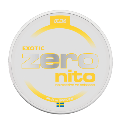 Zeronito Exotic Slim is a nicotine-free snus blend crafted by Zeronito, boasting a seductive fusion of ripe exotic fruits. This unique composition offers a flavor experience with juicy mango, pineapple, and more. Each can contains 20 slim portions, carefully designed to deliver a satisfying experience with each use. Embrace the tropical vibes without nicotine, making it an ideal choice for those seeking a refreshing alternative. Elevate your snus experience with Zeronito Exotic Slim, where vibrant flavor sensations meet tabacco and nicotine-free snus indulgence.